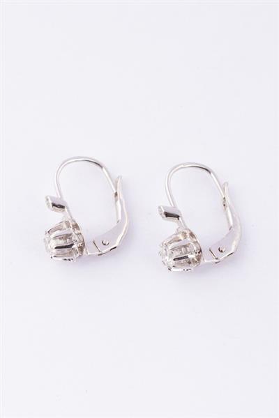 Paar 18 krt. wit gouden oorhangers met 4 briljanten. Totaal ca 0.38 ct.