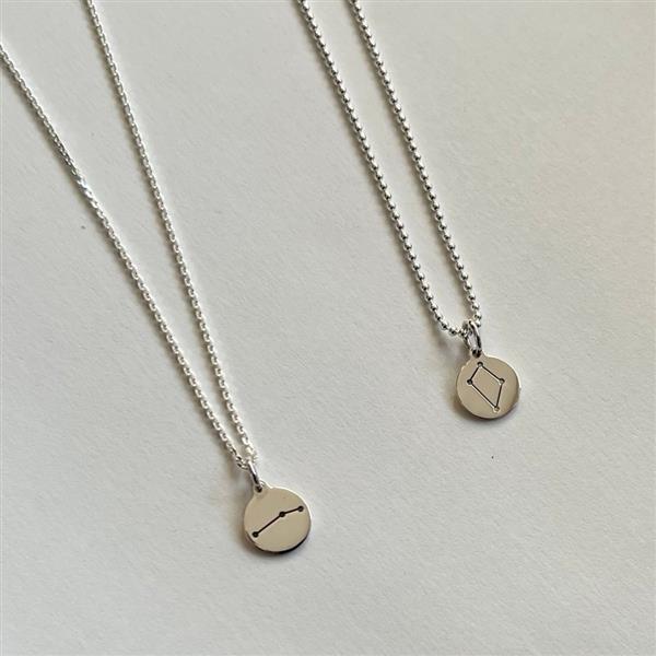 Zilveren sterrenbeeld ketting. Een bolletjes ketting of een kabel ketting met een lengte naar keuze met daaraan jouw sterrenbeeld. Super cadeau. (Op de tweede foto is een 40 cm bolletjes ketting te zien).